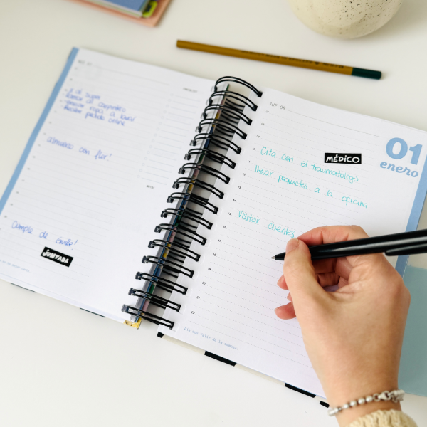 🖊️ Lapicera azul haciendo juego con el diseño de tu agenda